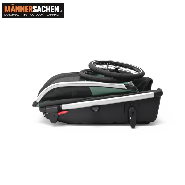 Der Anhänger lässt sich einfach auf eine kompaktere Größe zusammenklappen, wodurch er ideal für den Transport und kleine Wohnräume geeignet ist