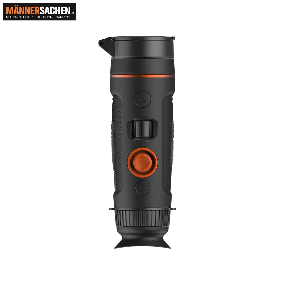 Besonders hervorzuheben sind die präzise Fokussierung über ein Drehrad, die hervorragende Bildqualität dank einer Auflösung von 384x288 Pixeln und 18mk Sensitivität, sowie eine F=0.9 Optik, die bei schlechten Wetterbedingungen ihre Stärken ausspielt.