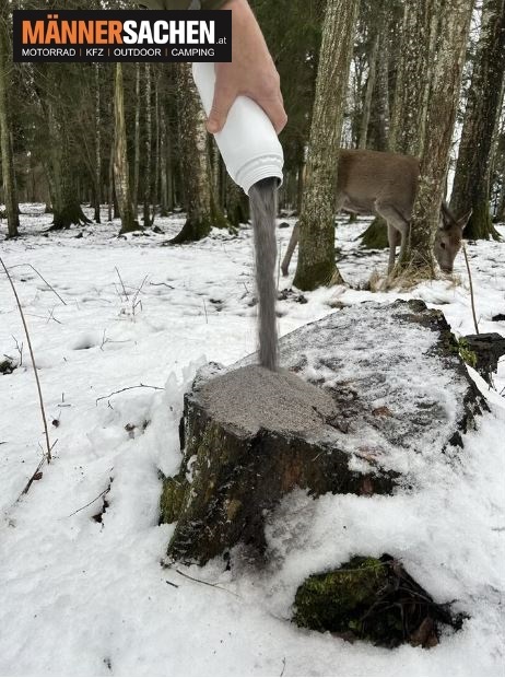 Wildlutscher Lock Salz kann schnell und einfach mit Kirrgut (z.B. Mais, Getreide) kombiniert oder einfach auf den Kirrplatz gestreut werden.