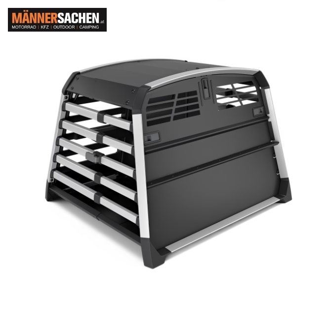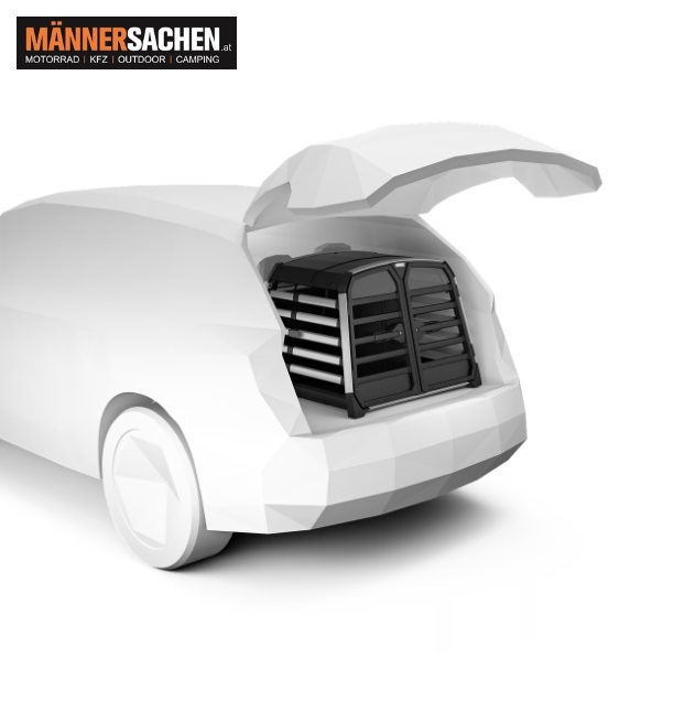 Die sichere, zuverlässige und einfach zu nutzende Hundebox für das Auto, die sowohl Hund als auch Menschen schützt. Geeignet für bis zu zwei Hunde.