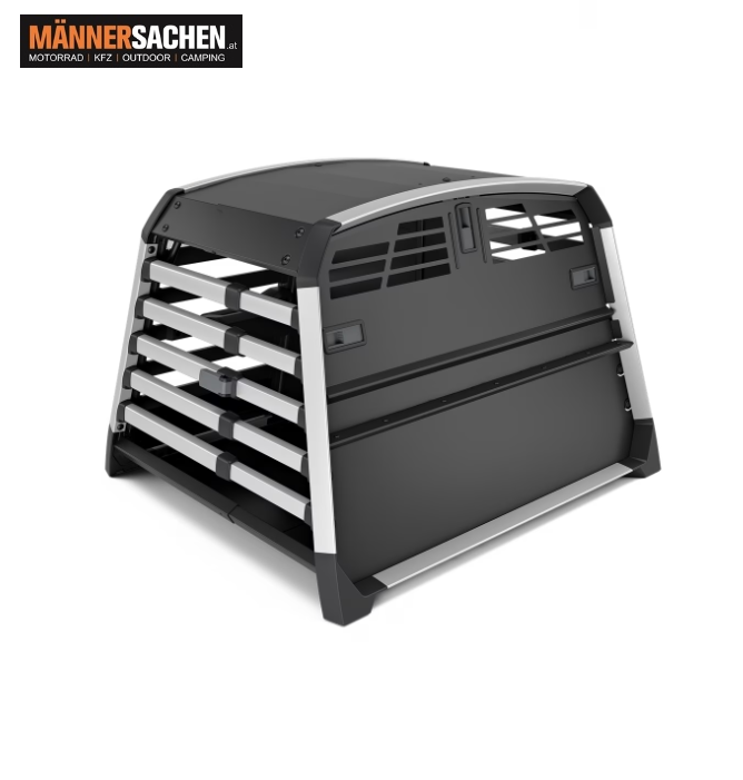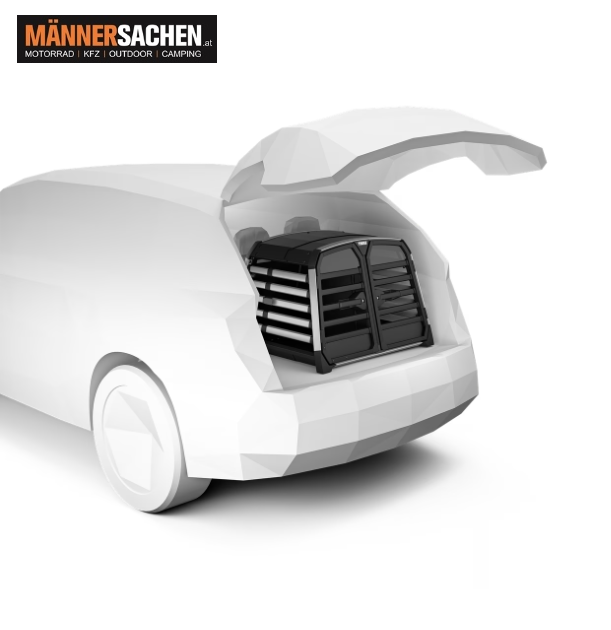 Die sichere, zuverlässige und einfach zu nutzende Hundebox für das Auto, die sowohl Hund als auch Menschen schützt. Geeignet für bis zu zwei Hunde.