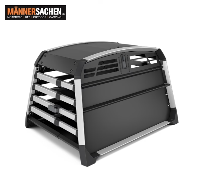 Die sichere, zuverlässige und einfach zu nutzende Hundebox für das Auto, die sowohl Hund als auch Menschen schützt. Geeignet für bis zu zwei Hunde.