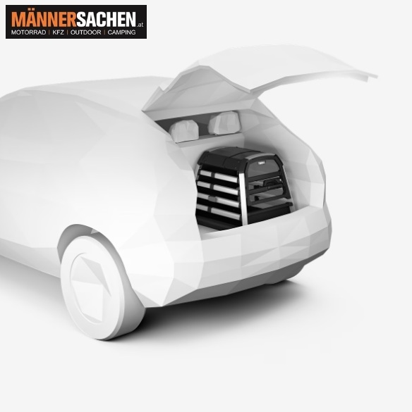 Die Box ist mit einer Ausstiegsklappe ausgestattet, die das Öffnen der Box vom Rücksitz aus ermöglicht