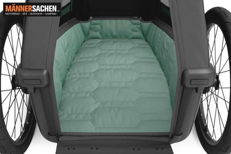 Der Anhänger bietet Kopffreiheit, Belüftung und verletzungsfreien Innenraum, ideal für kleine Besorgungen oder große Reisen.