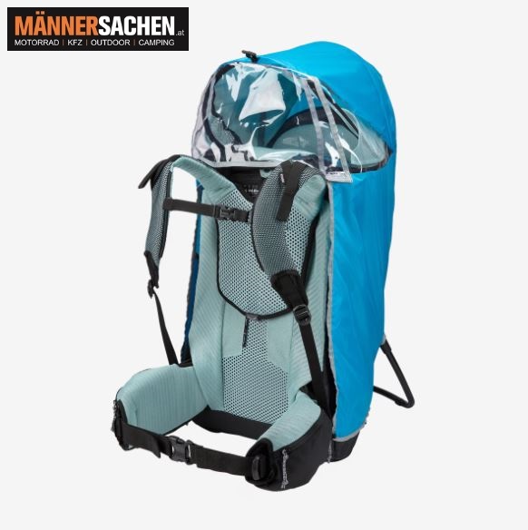 Halten Sie Ihr Kind und Ihre Habseligkeiten mit dem packbaren Kindertrage-Regenverdeck von Thule trocken.