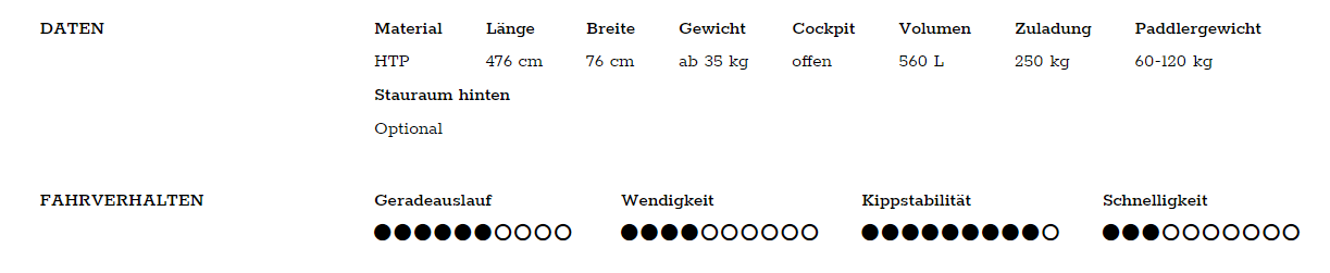 Paddlergewicht: 60-120 kg